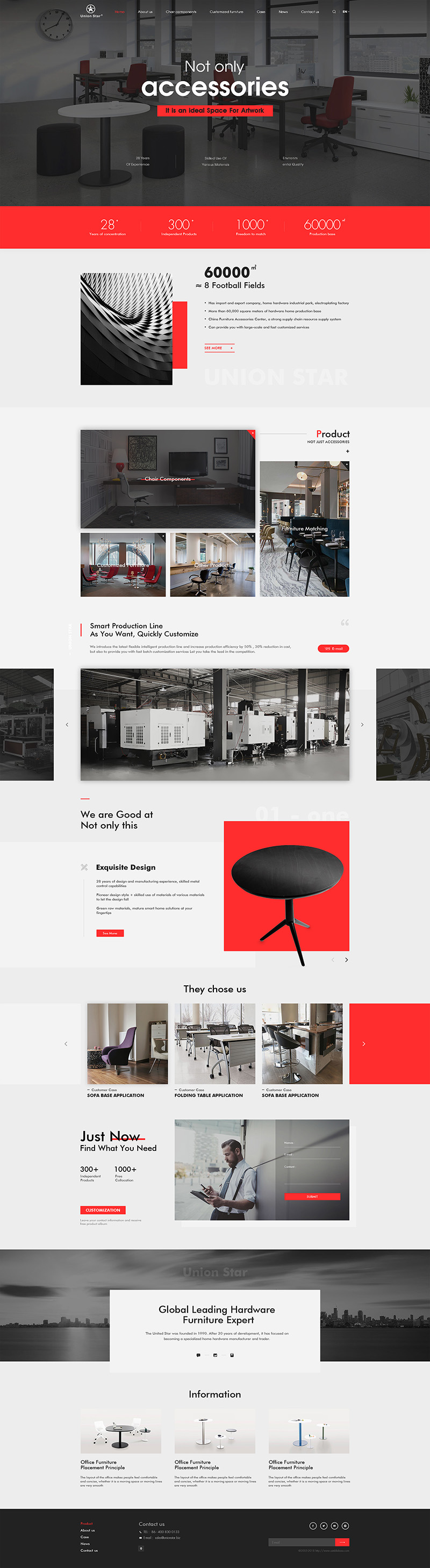 聯合之星始創(chuàng)于1990年,經過二十年的發(fā)展目前已經專注成為專營家居五金制造商和貿易商。公司旗下有進出口公司,家居五金工業(yè)園,電鍍廠,以及順德、杭州分公司。其中,欣拓是聯合之星直屬的、目前中國規(guī)模較大的家居五金生產基地,占地60000多平方米。進出口公司、各地分公司和國外代理商、經銷商為全球家具制造企業(yè)提供及時、貼身的服務。