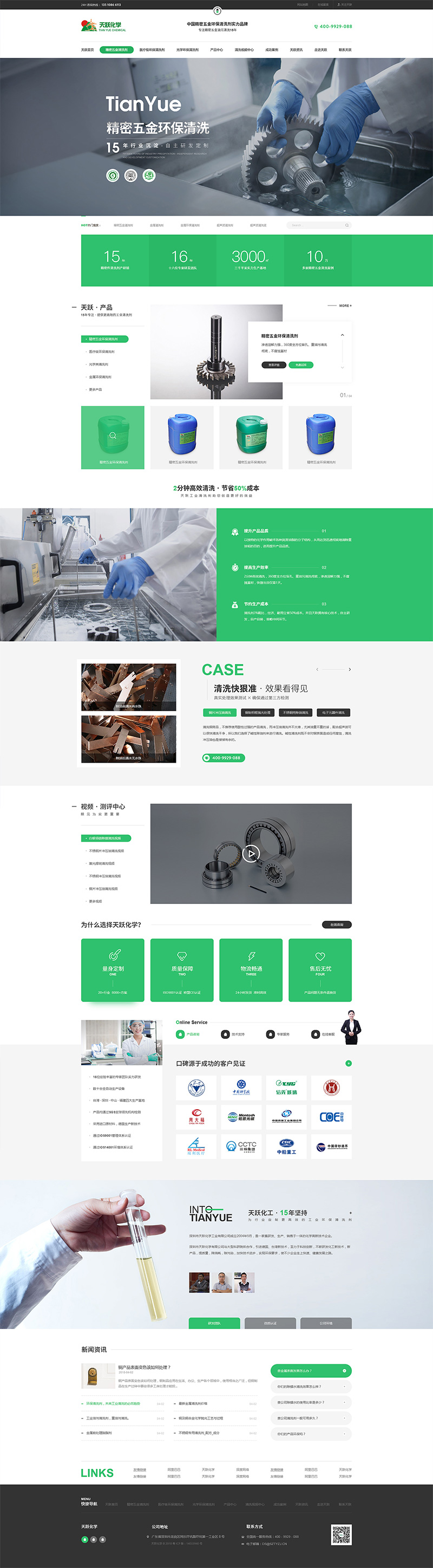 天躍化學引進臺灣最新科技配方,研發出了一系列的高新產品,環保工業清洗劑,食品醫療級清洗劑等,以“市場作為導向,科技為動力,質量是生命”為公司一貫的經營方針,“科技、環保、安全、高效”是公司賴以生存的企業精神,也獲得了諸多認可,服務客戶包括海爾、金寶集團、中科院等權威企業和單位。