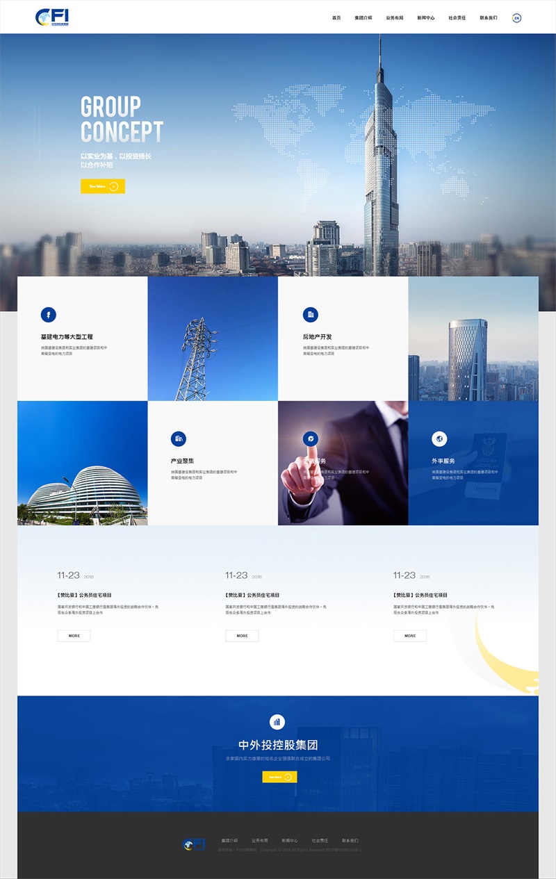 中外投控股集團有限公司是由河南國基集團、江西博富集團、江西國基實業有限公司、深圳前海國基有限公司等多家國內實力雄厚的知名企業強強聯合成立的集團公司。集團以投資業務為主體,從事大型基建、電力能源、地產開發、產業聚集、金融服務和外事服務等多領域業務。集團匯聚各股東集團的優勢,圍繞我國 “一帶一路”倡議,實現產業轉型,激發平臺效應,共同打造新興綜合產業。同時,集團與多個國內大型金融機構建立長期戰略合作伙伴關系,如國開行、工行、中信保等,取得了優秀成績。