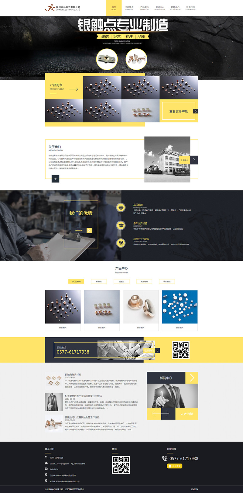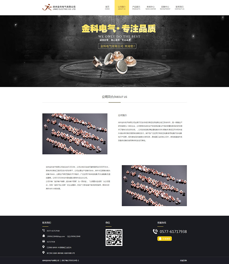 徐州金科電氣有限公司坐落于歷史名城漢高祖劉邦誕育之地江蘇徐州市,是一家集生產(chǎn)研發(fā)銷售為一體的企業(yè),公司擁有先進(jìn)的生產(chǎn)和檢測設(shè)備為產(chǎn)品的質(zhì)量和新品的研發(fā)提供了強(qiáng)有力的支持與保。,公司在制造貴/廉金屬電觸頭材料.銀觸點(diǎn).高低壓開關(guān)相關(guān)組件.復(fù)合帶材等方面擁有完善的技術(shù)。其產(chǎn)品廣泛運(yùn)用于高低壓電器.家用電器.汽車電器電子產(chǎn)品等,擔(dān)負(fù)著電流的接通與分?jǐn)嗳蝿?wù),是電器工業(yè)的核心元件,其性能直接關(guān)系到整體設(shè)備的使用壽命和安全可靠性。